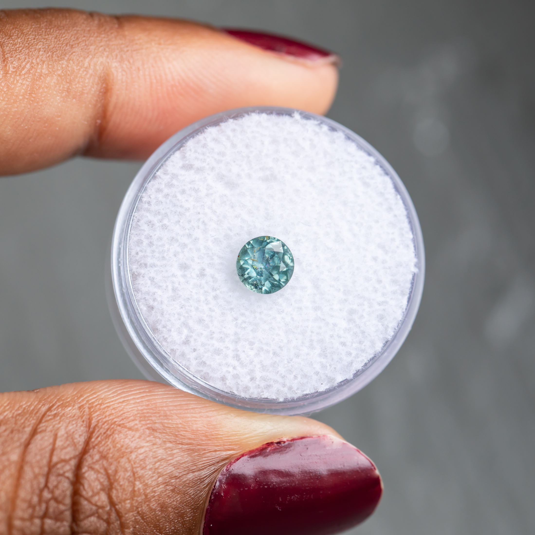 0.92CT MONTANA SAPPHIRE, TEAL GREEN, 5.50X4.05MM, UNTREATED. Gorgeous, desirable and bright green teal color. Totally natural, untreated with great clarity and sparkle! Light silk, not visible to the naked eye.