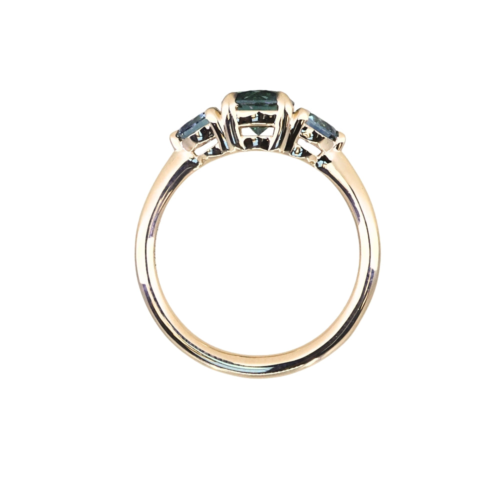 0.92ct Unheated Teal Montana Sapphire and Montana Sapphire Side Three Stone Ring in 14k Yellow Gold