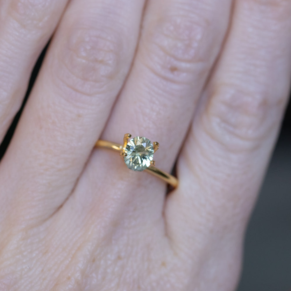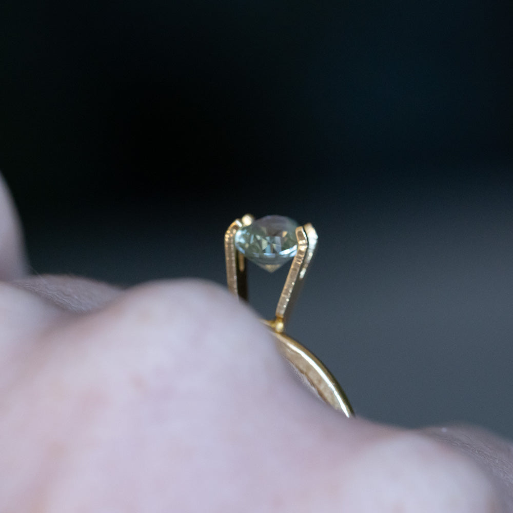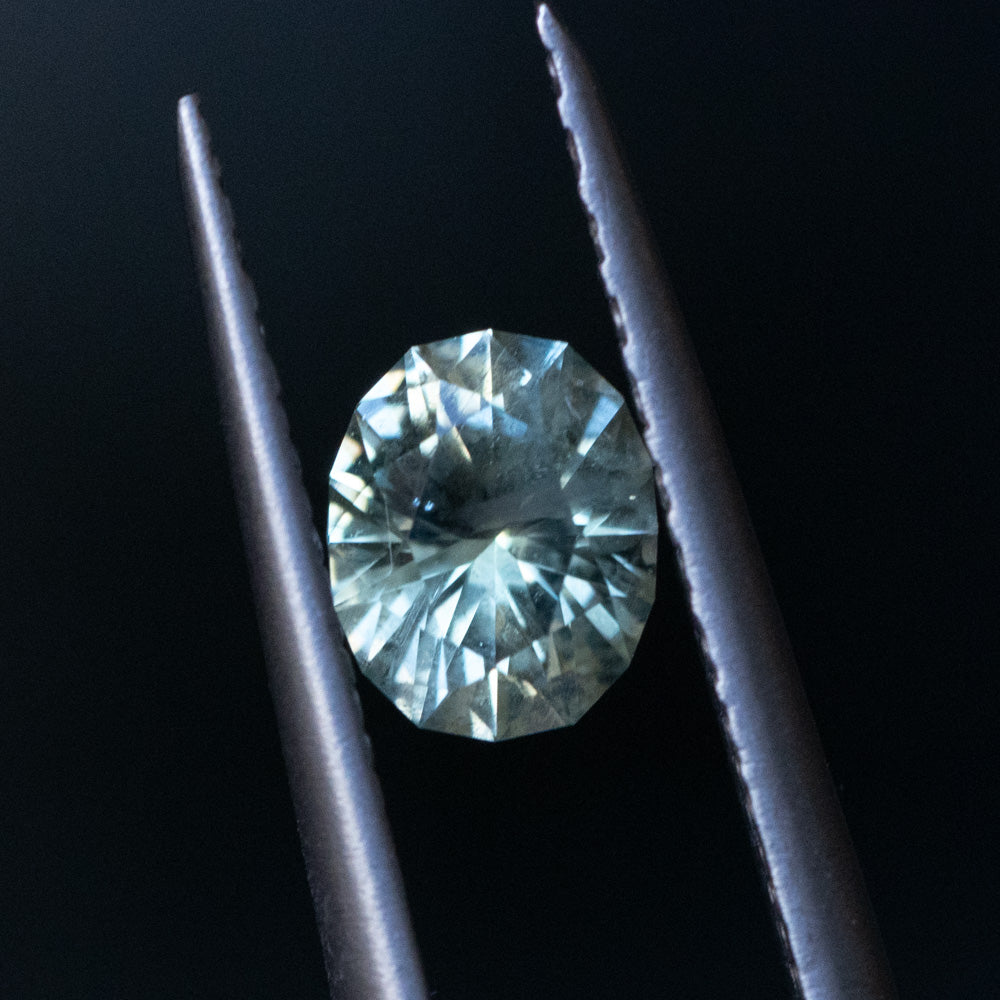 1.04CT PRECISION CUT OVAL MONTANA SAPPHIRE, MINTY LIGHT GREEN YELLOW, 6X5MM. Mined in Rock Creek, Montana, USA. Will shift in color from more minty blue in natural light and more green with yellow flashes indoors. This sapphire has been heated, a permanent treatment for color and clarity.