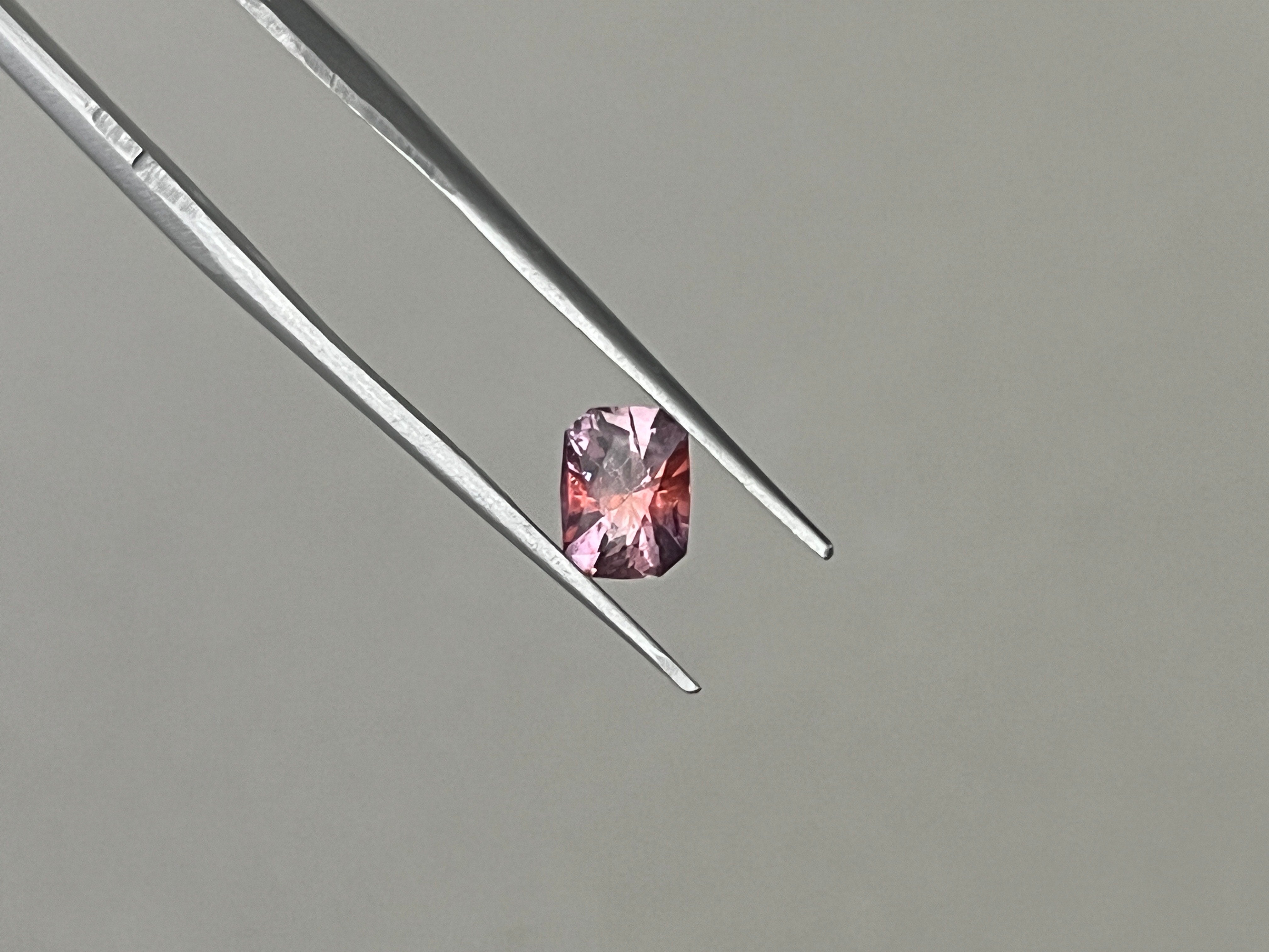 1.00CT FANCY ELONGATED CUSHION MONTANA SAPPHIRE, BI COLOR PINK AND RED, 6.8X5.2MM