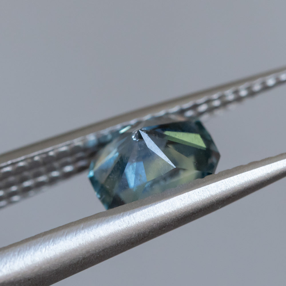 1.16CT RADIANT CUT MONTANA SAPPHIRE, TEAL BLUE, 6.57X4.56X4.16MM. This sapphire was mined in Rock Creek, Montana and was precision cut for sparkle. The stone has some light visible silk but still sparkles! Not hazy. Will darken in color indoors. This sapphire is heated, a permanent treatment for color and clarity.
