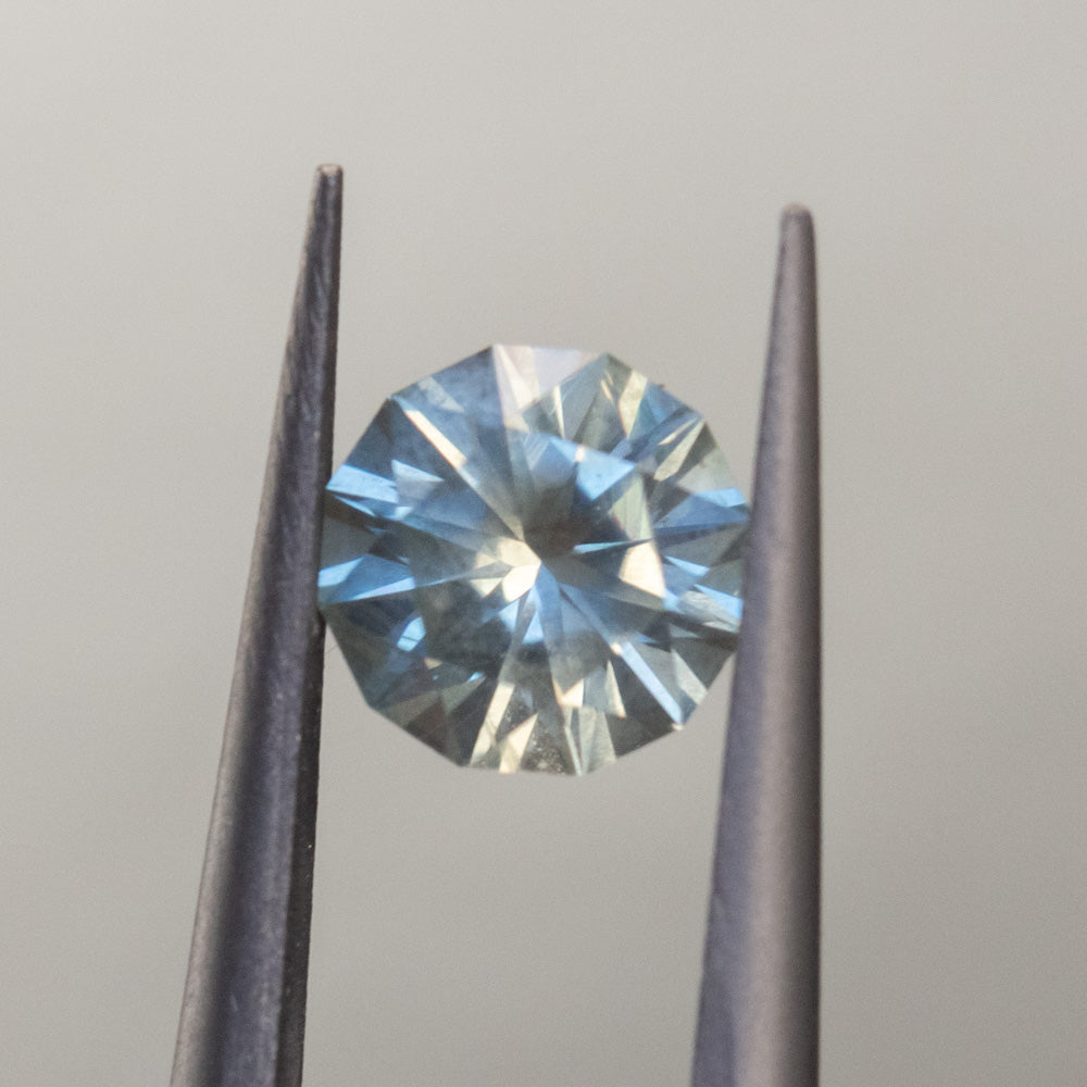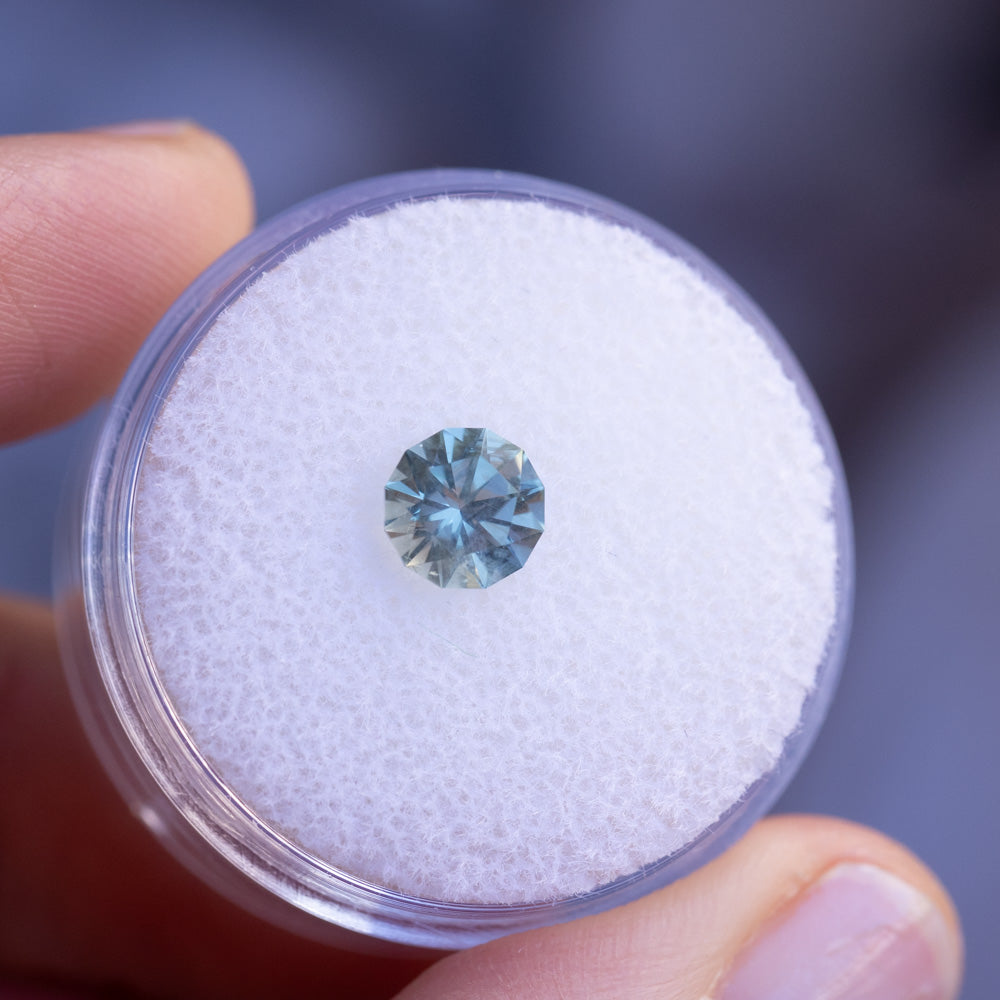 1.20CT ROUND PRECISION CUT MONTANA SAPPHIRE, SHIMMERY AQUA BLUE, UNTREATED, 6X4.1MM