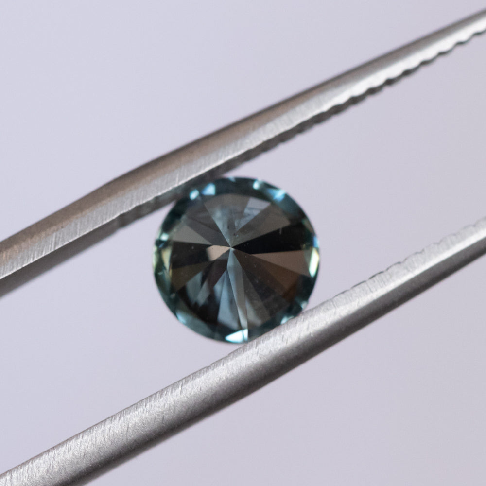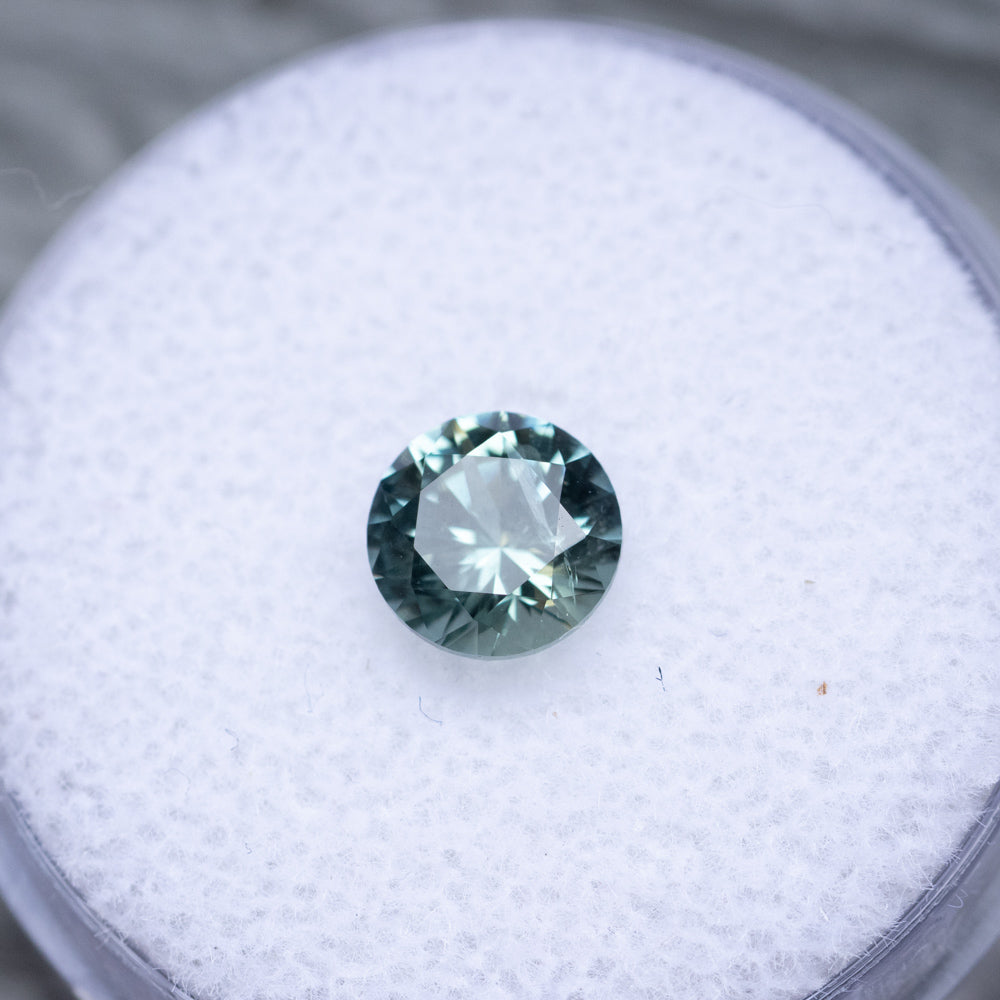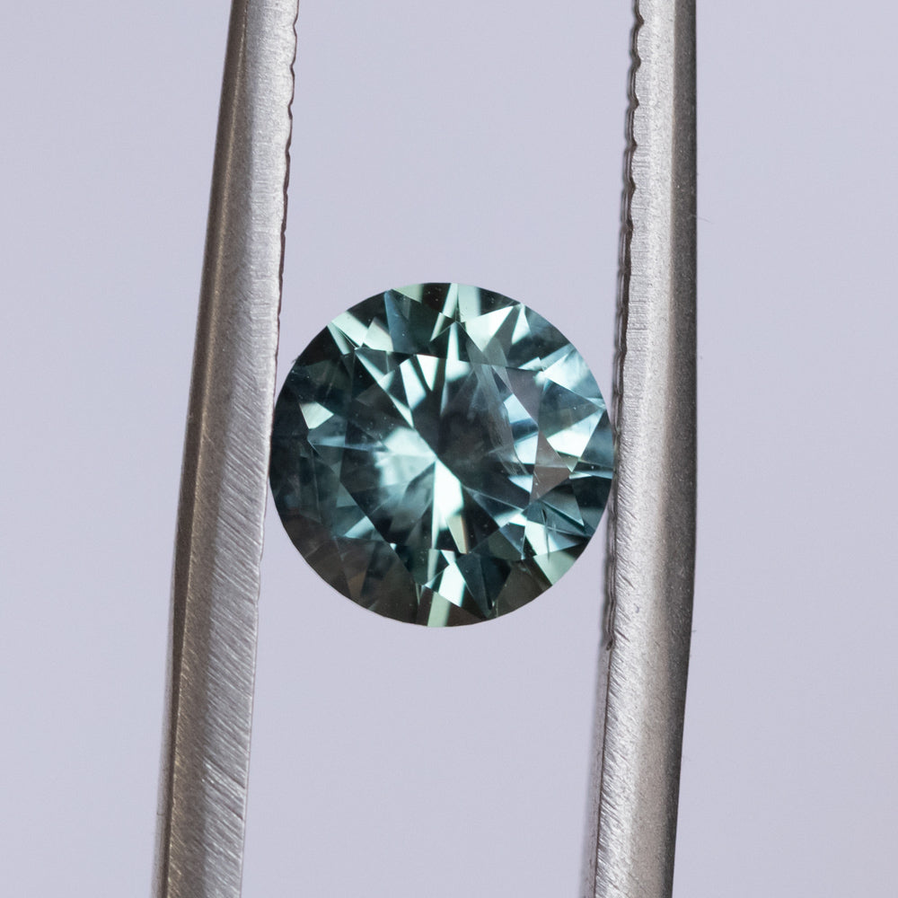 1.26CT ROUND MONTANA SAPPHIRE, LIGHT TEAL BLUE GREEN, 6.3X4.2MM