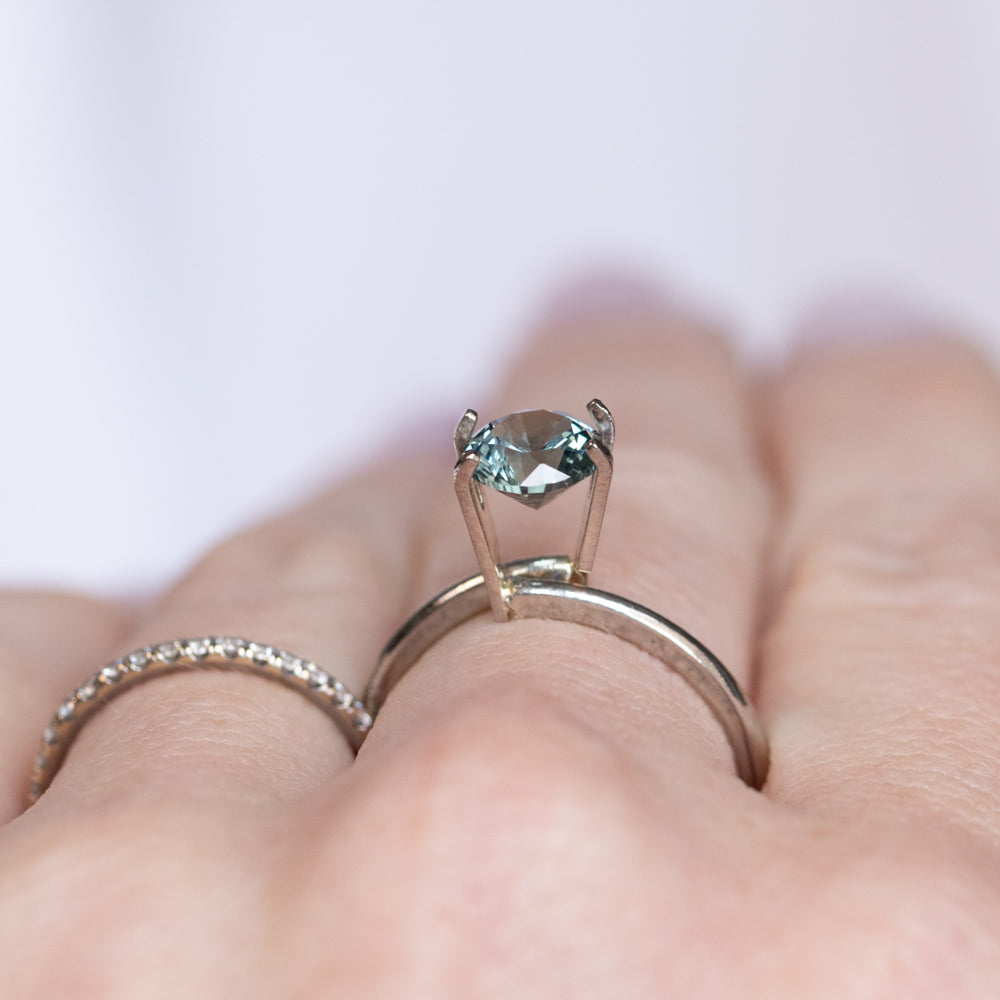 1.26CT ROUND MONTANA SAPPHIRE, LIGHT TEAL BLUE GREEN, 6.3X4.2MM, heated. Mined in Rock Creek, Montana, USA. Precision cut round brilliant sapphire mined in Montana! This sapphire has a visible feather inclusion, as shown in the photos.