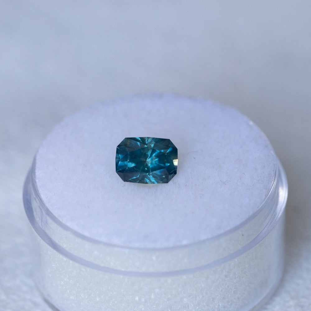 1.34CT RADIANT PRECISION CUT MONTANA SAPPHIRE, DARK TEAL, 6.76X5.18X4.28MM