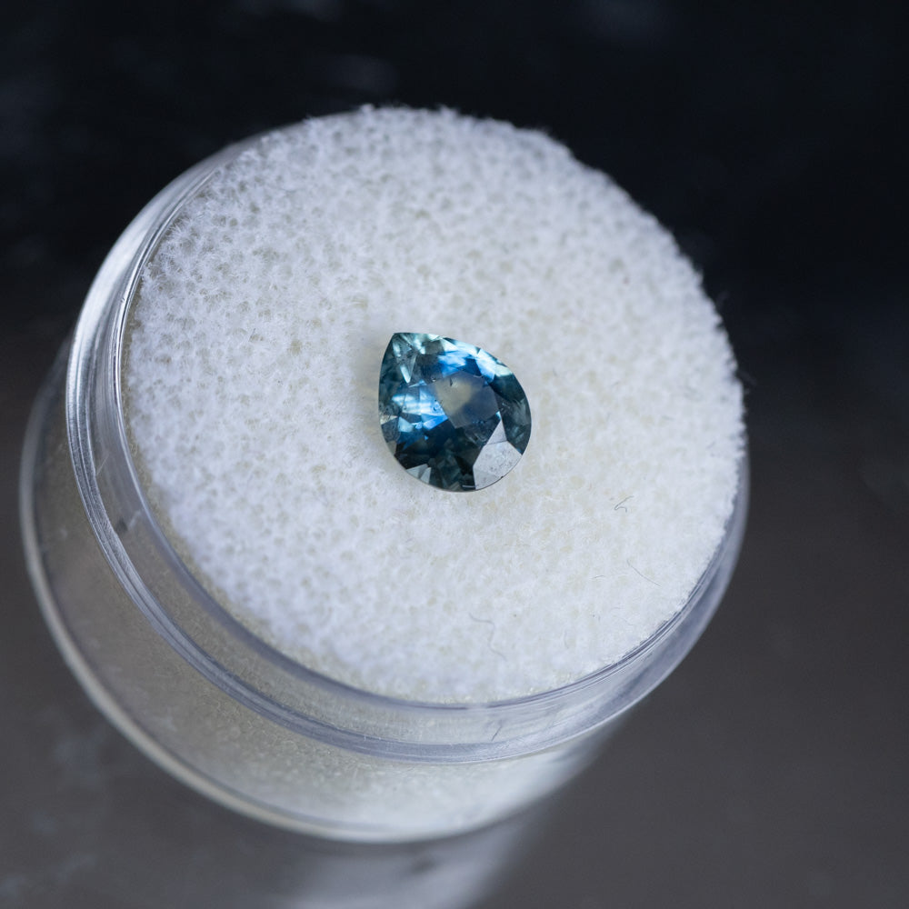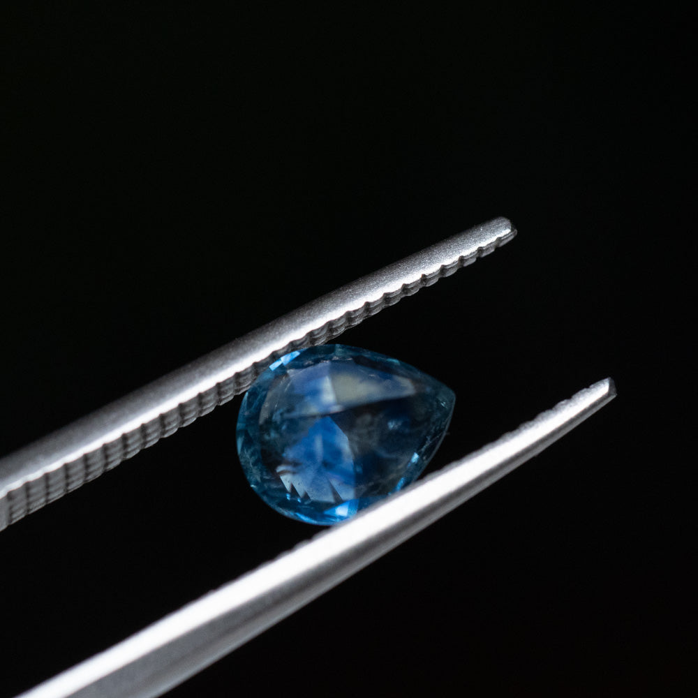 1.36CT PEAR MONTANA SAPPHIRE, PARTI BLUE WHITE, 7.76X6.42X3.89MM, UNTREATED
