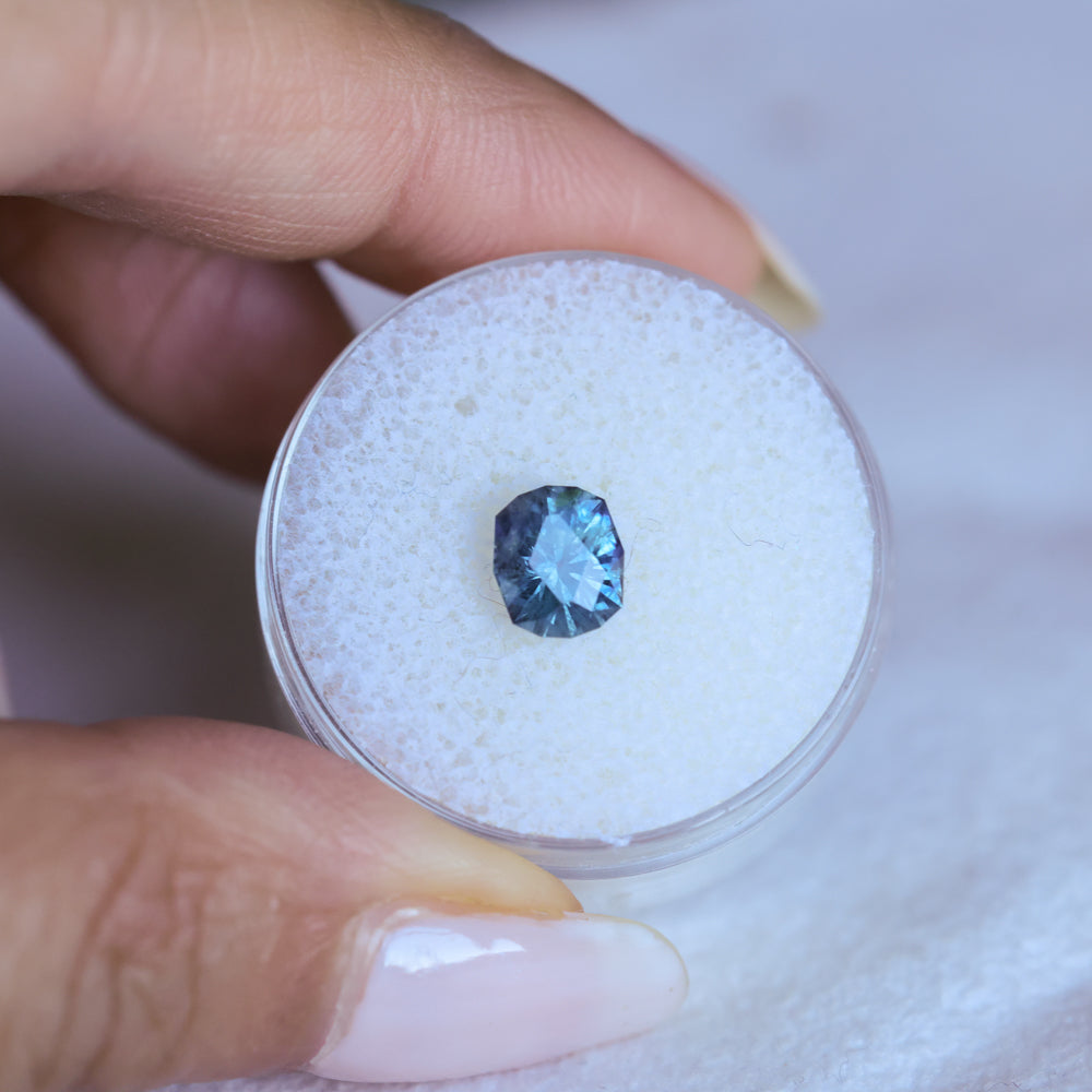 1.38CT PRECISION CUT OVAL MONTANA SAPPHIRE, OCEAN BLUE TEAL, 7.0X6.0X4.4MM