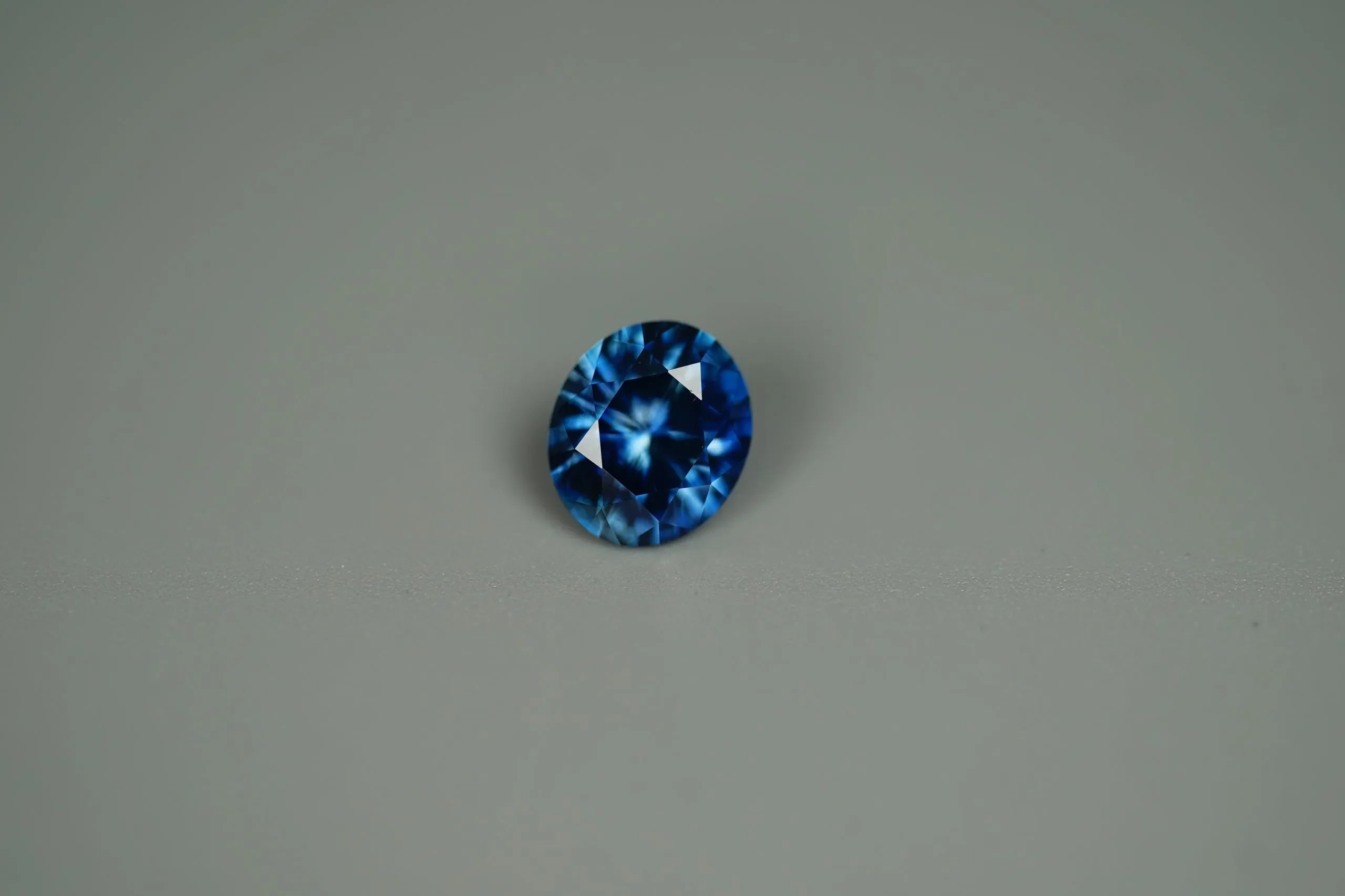 1.39CT OVAL PRECISION CUT MONTANA SAPPHIRE, BLUE, 7.2X6.3MM. A diamond-like precision round brilliant cut, very clean clarity. Maximum sparkle within this Montana sapphire! Mined and faceted in the USA. This sapphire has been heated, a permanent treatment for color and clarity. Will shift in color depending on the light available from more vibrant blue in natural light to a more deep, darker blue indoors.