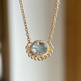 1.40ct Oval Fantasy Cut Montana Sapphire Vine Frame Necklace in 14k Yellow Gold
