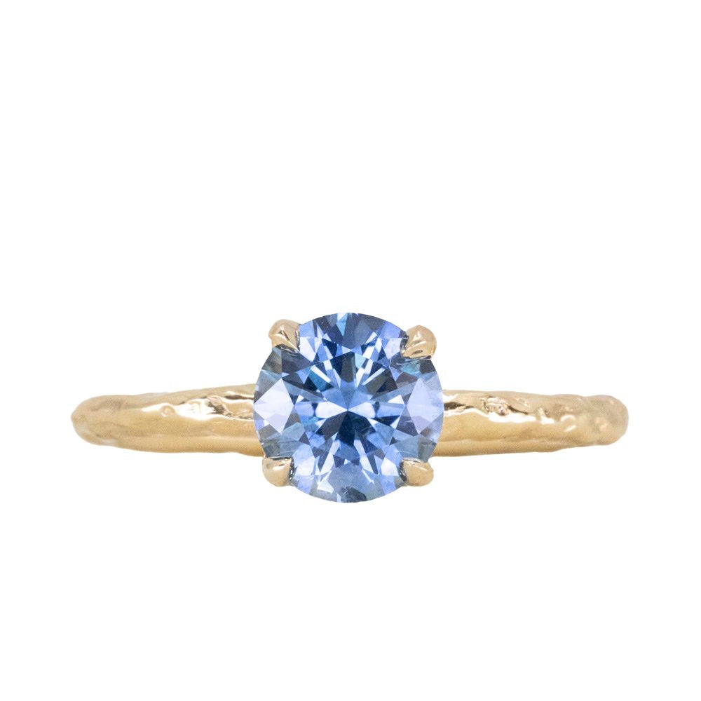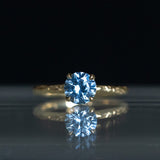 1.40ct Round Blue Precision Cut Montana Sapphire Evergreen Carved 4 Prong Solitaire in 18k Yellow Gold
