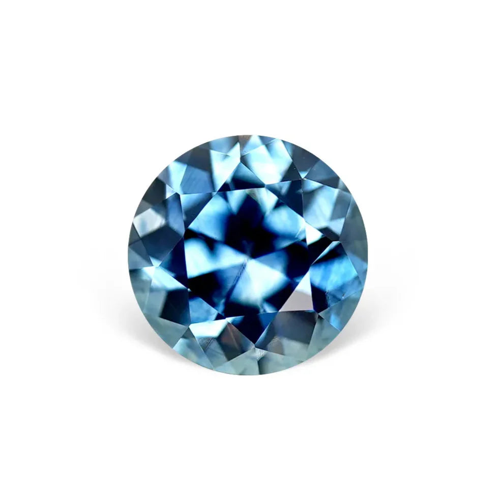 1.51CT ROUND PRECISION CUT MONTANA SAPPHIRE, MEDIUM OCEAN BLUE, 6.7X4.5MM. A diamond-like precision round brilliant cut, very clean clarity (better than eye clean). Maximum sparkle within this Montana sapphire! Mined and faceted in the USA. This sapphire has been heated, a permanent treatment for color and clarity. This sapphire has a more flowery cut, almost like an Old European Cut and will darken up indoors.