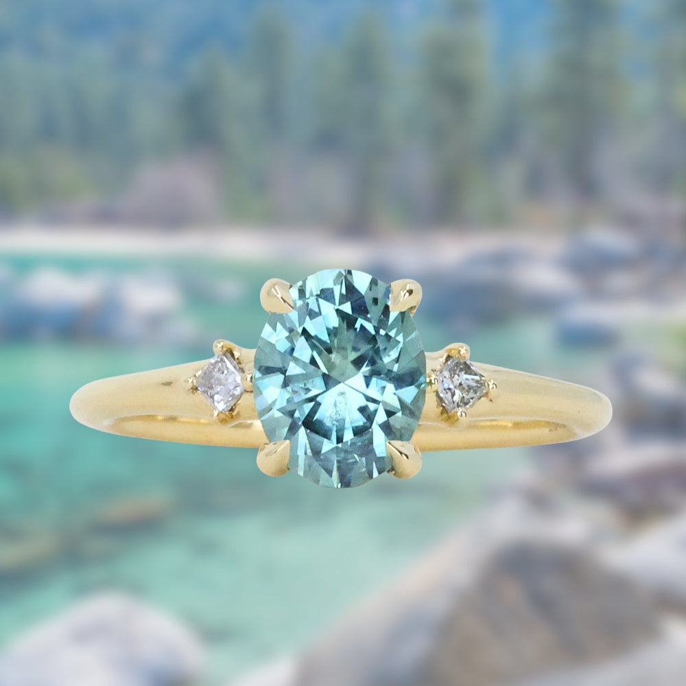 2.01ct Oval Precision Cut Denim Blue Untreated Montana Sapphire and Princess Cut Diamond Rapids Low Profile Ring in 18k Yellow Gold