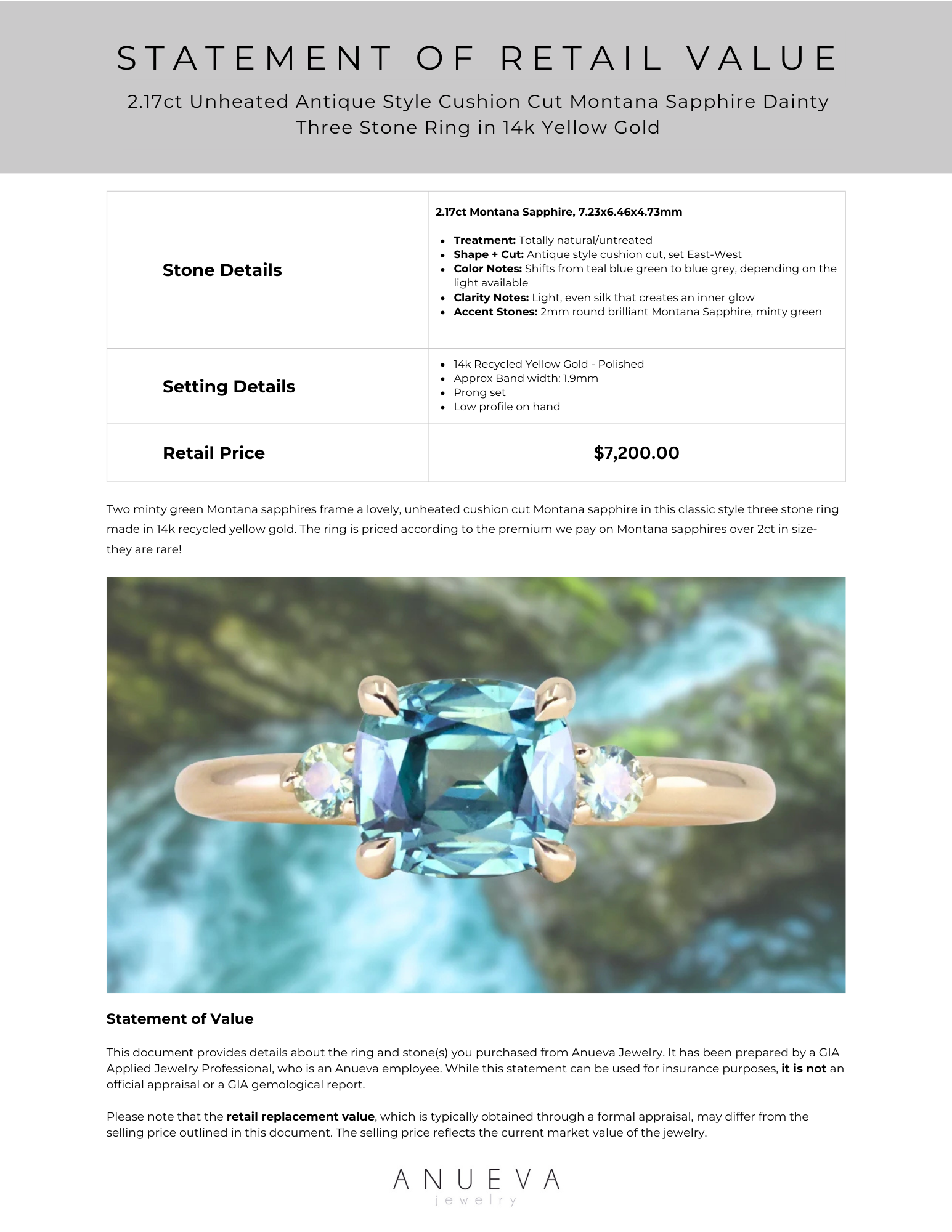 - Gemstone: Montana sapphire