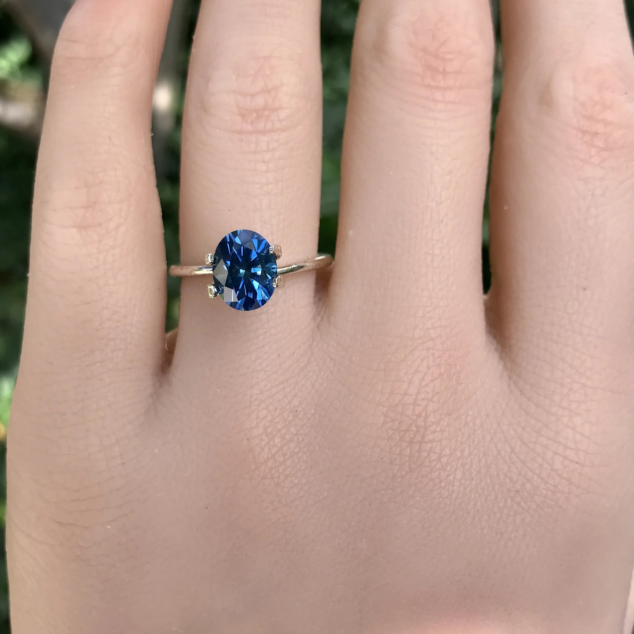 2.29CT OVAL PRECISION CUT MONTANA SAPPHIRE, DEEP BLUE, 8.3X6.6MM. A diamond-like precision oval brilliant cut, very clean clarity. Mined and faceted in the USA. A rare, larger size for sapphires from Rock Creek, Montana. This sapphire has been heated, a permanent treatment for color and clarity. Will shift in color depending on the light available from more blue to more green.