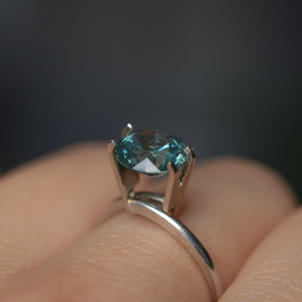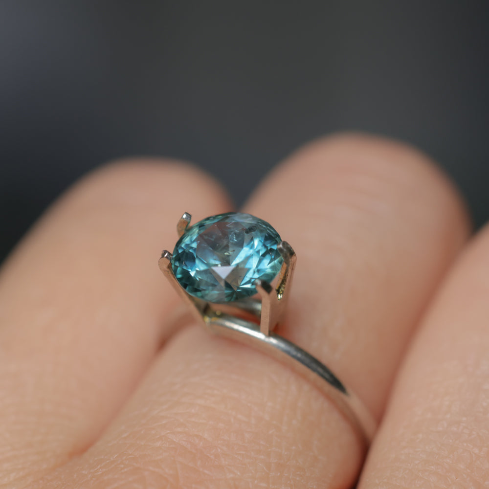 2.31CT ROUND BRILLIANT MONTANA SAPPHIRE, OCEAN BLUE, 7.83X5.05MM. This sapphire was mined in the US in Montana. It is a rare larger size over 2ct and given a precision cut with brilliant facets. Some visible inclusions in this stone but it is not opaque- still sparkles.
