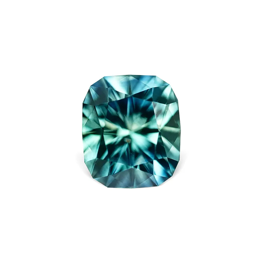 2.44CT CUSHION PRECISION CUT MONTANA SAPPHIRE, BICOLOR BLUE TEAL, 7.9X6.8MM