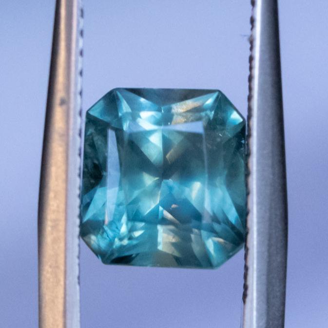 2.46CT RADIANT CUT MONTANA SAPPHIRE, TEAL BLUE GREEN-GREY, 7.71X7.07X5MM, UNTREATED