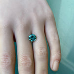 2.91CT PRECISION CUT ROUND BRILLIANT MONTANA SAPPHIRE, TEAL GREEN PARTI, 8.3MM. A diamond-like precision round brilliant cut, slightly included clarity. Mined and faceted in the USA. This sapphire has been heated, a permanent treatment for color and clarity. Like most Montana sapphires, this stone will shift a bit in color depending on the natural light available.