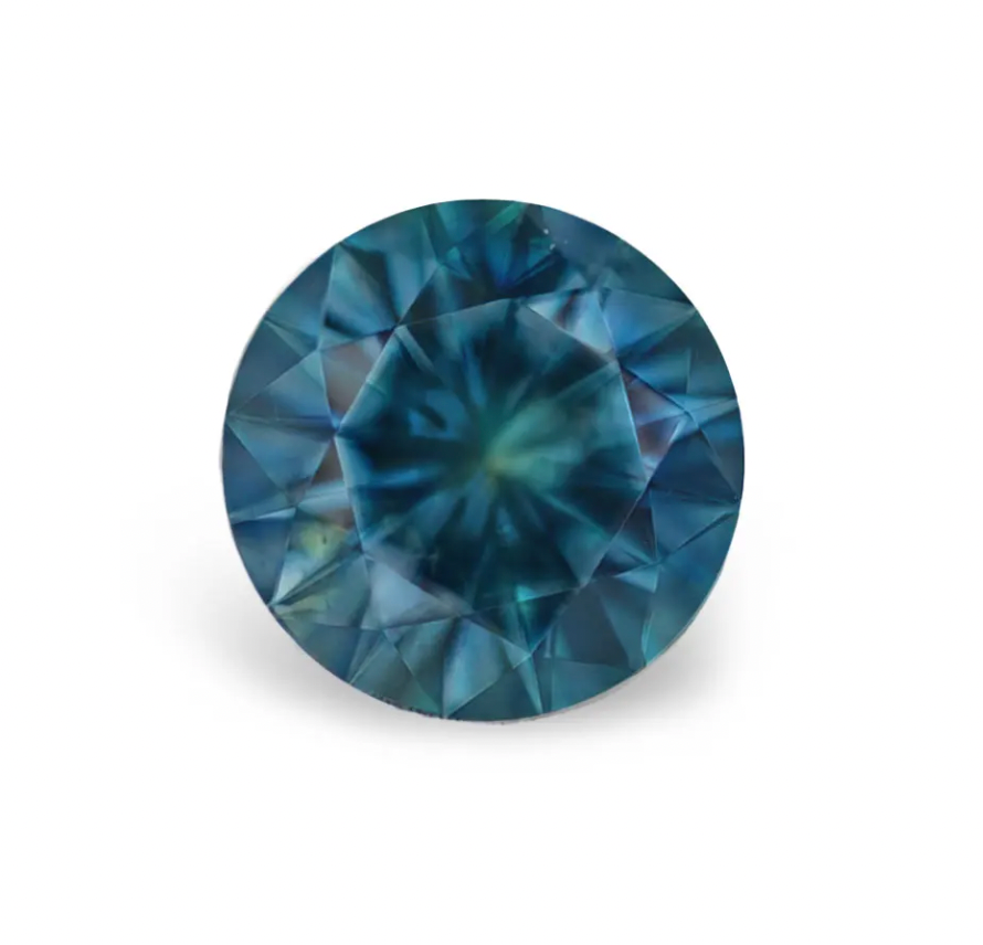 3.19CT PRECISION CUT ROUND BRILLIANT MONTANA SAPPHIRE, DEEP TEAL BLUE GREEN, 8.7MM. A diamond-like precision round brilliant cut, slightly included clarity. Mined and faceted in the USA. This sapphire has been heated, a permanent treatment for color and clarity. Like most Montana sapphires, this stone will shift a bit in color depending on the natural light available.
