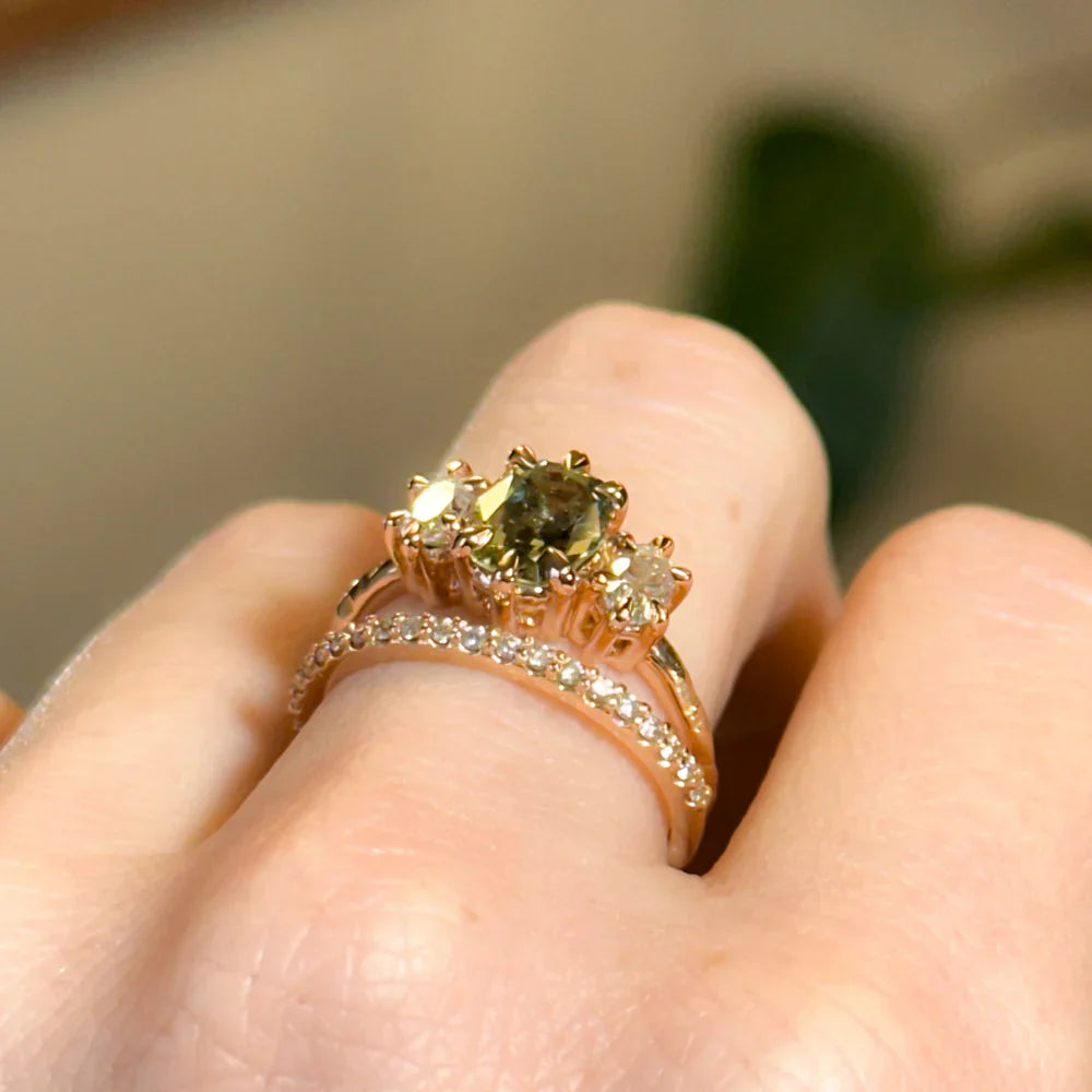 Antique Inspired Three Stone Diamond Band - Setting