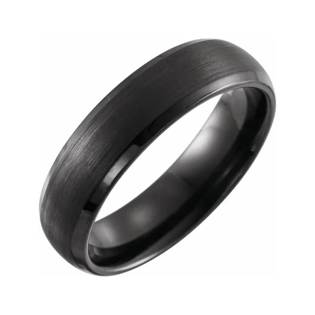 Beveled Edge Black Tungsten Ring - 6mm Band