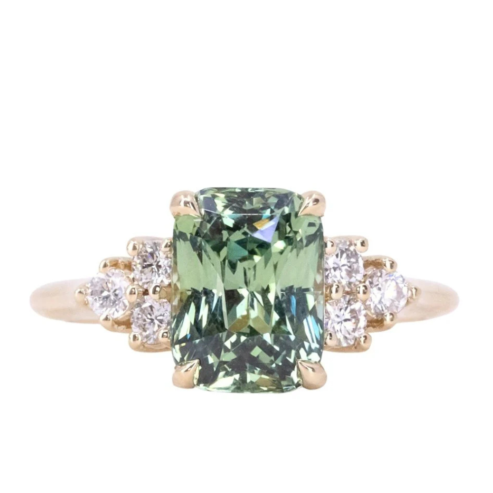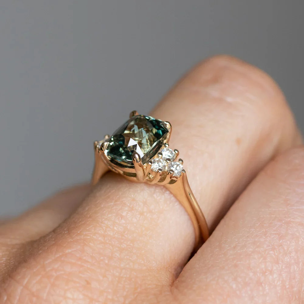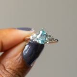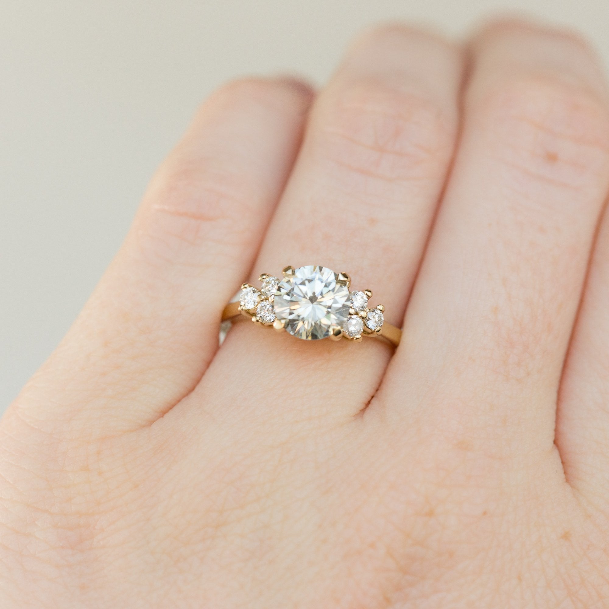 Fun, eclectic and vintage-inspired prong set cluster ring with diamond side stones. The diamonds are conflict-free, VS2-SI1 clarity and GH white in color.