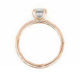 A daintier look from our traditional 4 prong solitaire, splitting the prongs into two points is an interesting design element. This is a classic profile, stackable with straight bands.