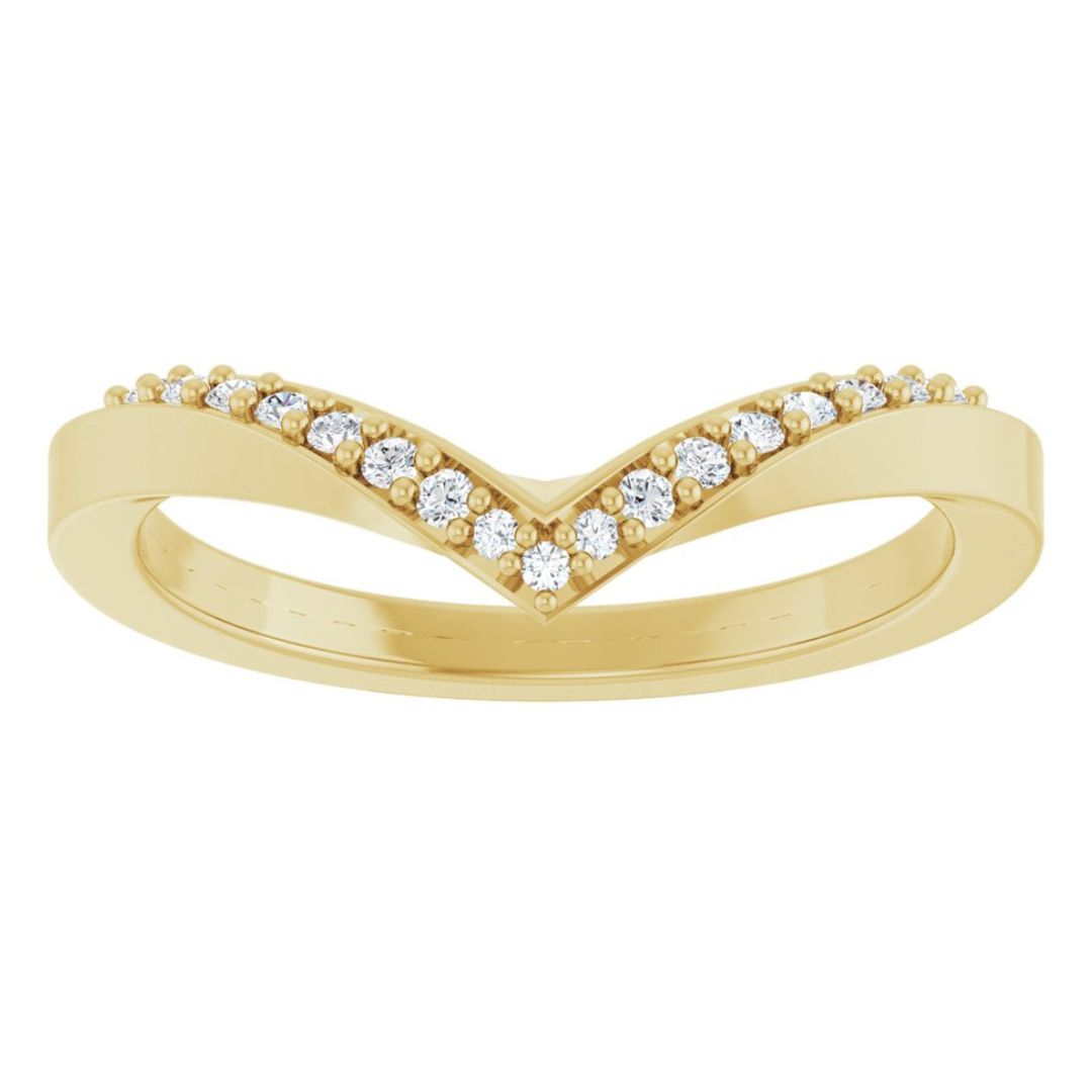 Hike to the highest peak of ring stacking with our new Elevation pointed band. Featuring 14 natural brilliant cut round diamonds and a sleek metal knife edge design, this ring is an ideal addition to your ring collection.