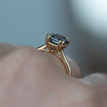 A daintier look from our traditional 4 prong solitaire, splitting the prongs into two points is an interesting design element. This is a classic profile that is adjusted to match the height of your chosen center stone.