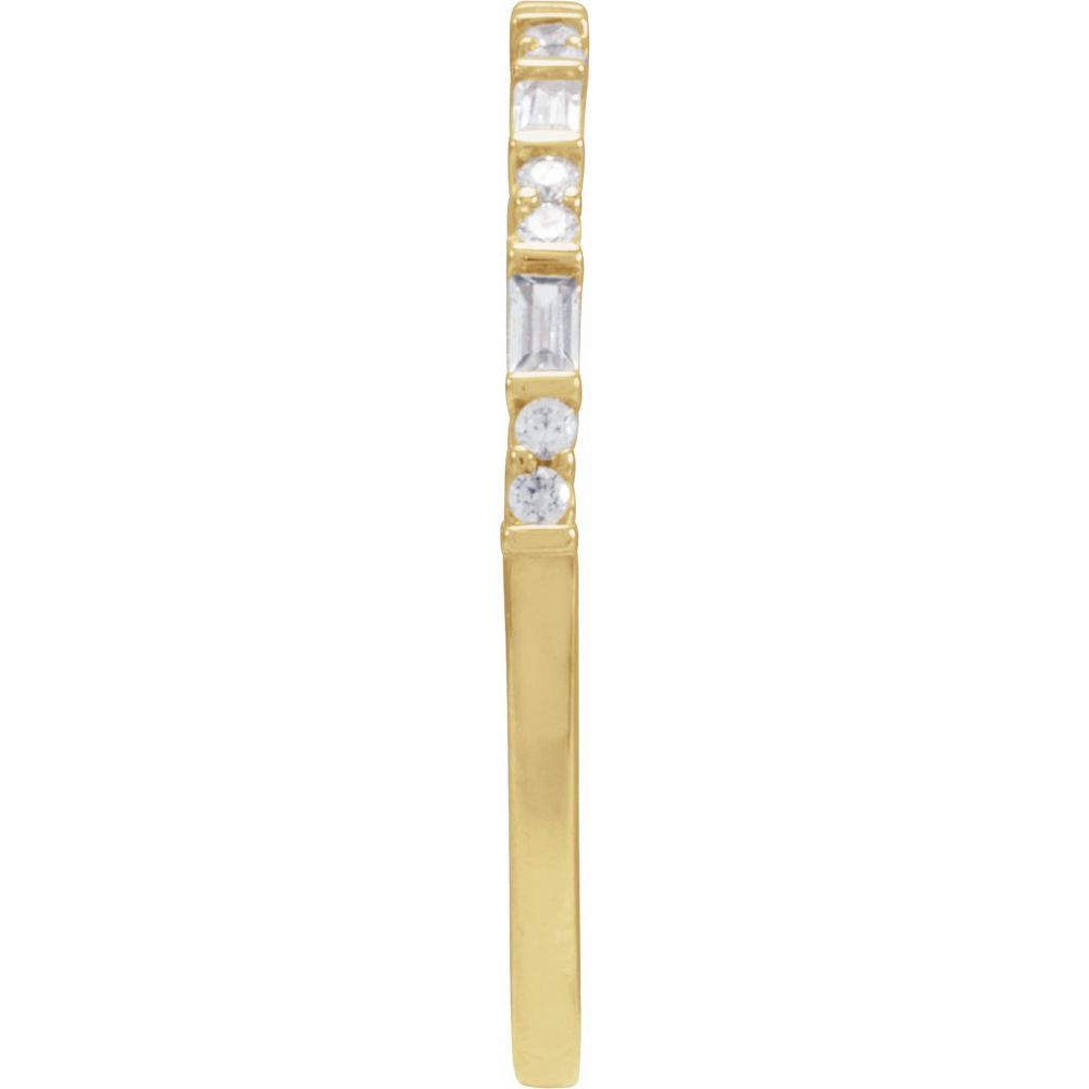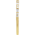 - Shape + Cut: (x12) 1.2mm brilliant round diamonds and (x5) 2.30X1.20mm baguette