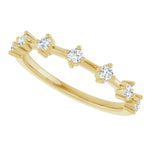 This band boasts 1/4 carat weight of diamonds, making it the perfect complement to any stackable engagement ring or as a standalone piece.